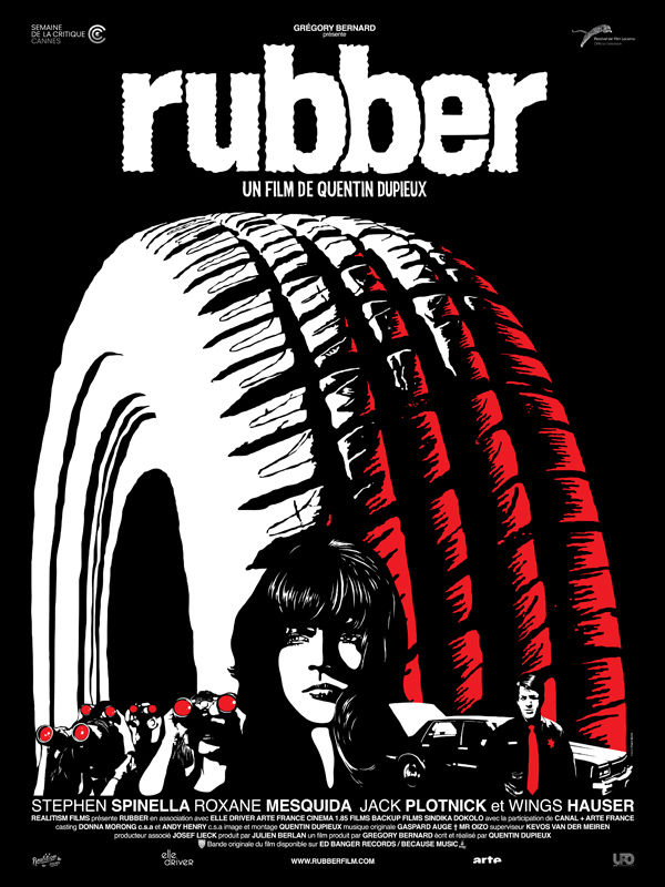 Film français du réalisateur Quentin Dupieux, Rubber est sorti en 2010. Les rôle principaux y sont assurés par Stephen Spinella, Roxane Mesquida et Jack Plotnick.